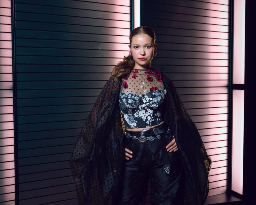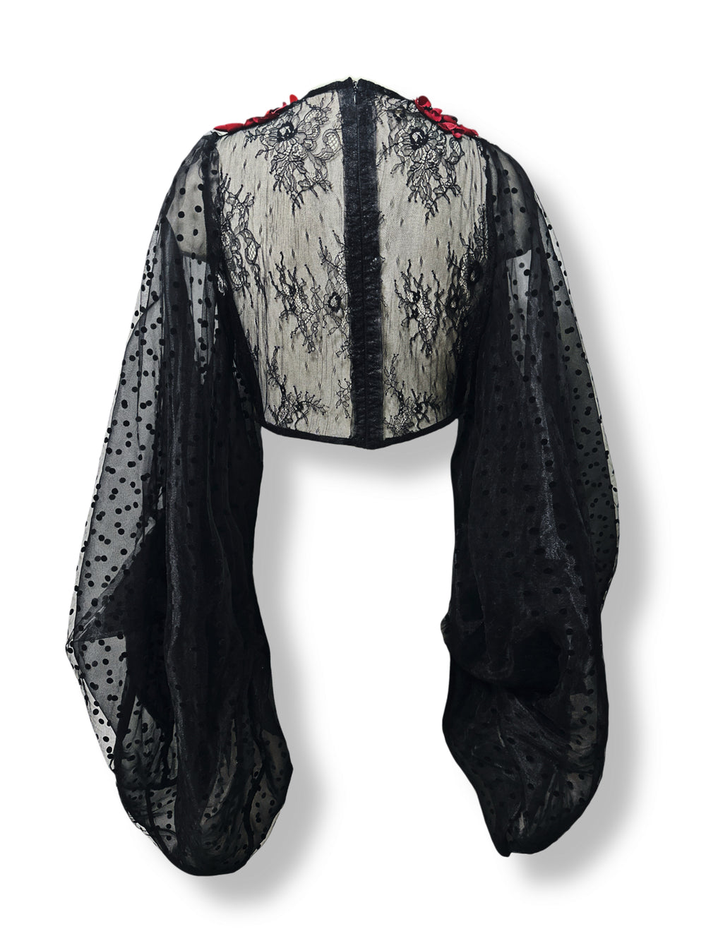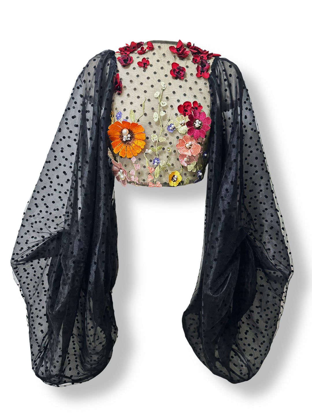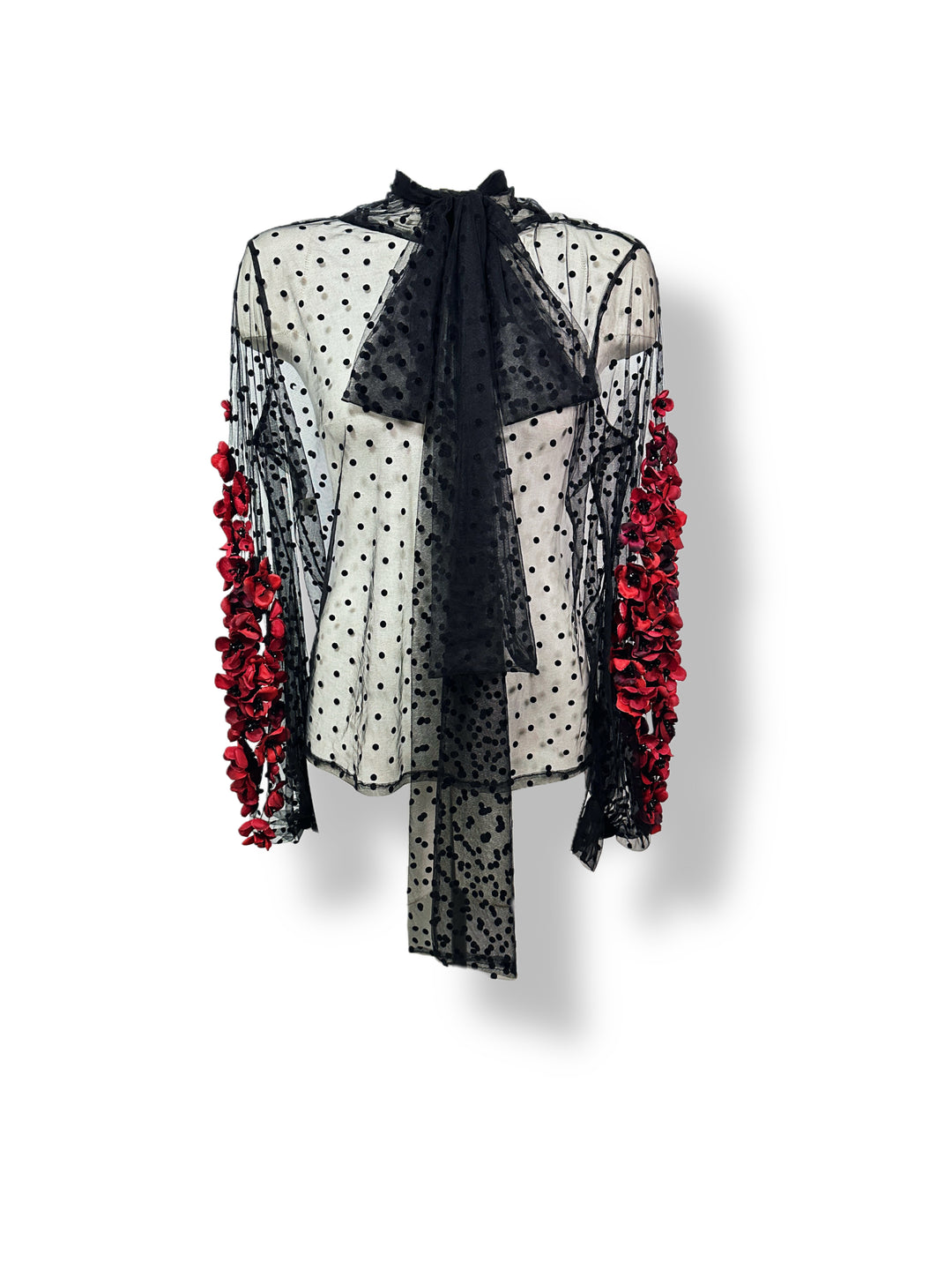 Sheer velvet polka dot blouse with roses