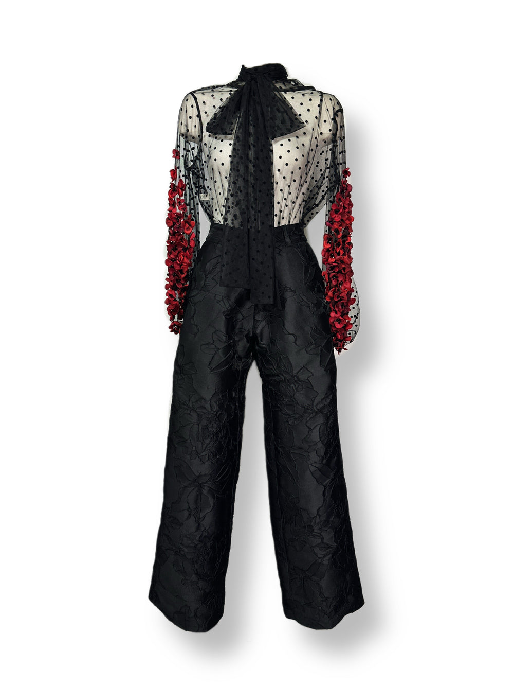 Black brocade wide-leg pants